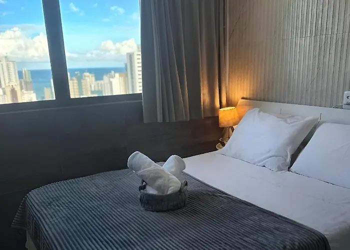 O Flat 26º Andar Com Vista Para O Mar- Proximo Ao Shopping E A Praia De Boa Viagem oferece aos hóspedes a conveniência de comodidades auto-suficientes, incluindo máquina de café/chá, refrigerador e artigos de vidro. A estação de comboios Transporte Complementar está a cerca de 500 metros de distância.